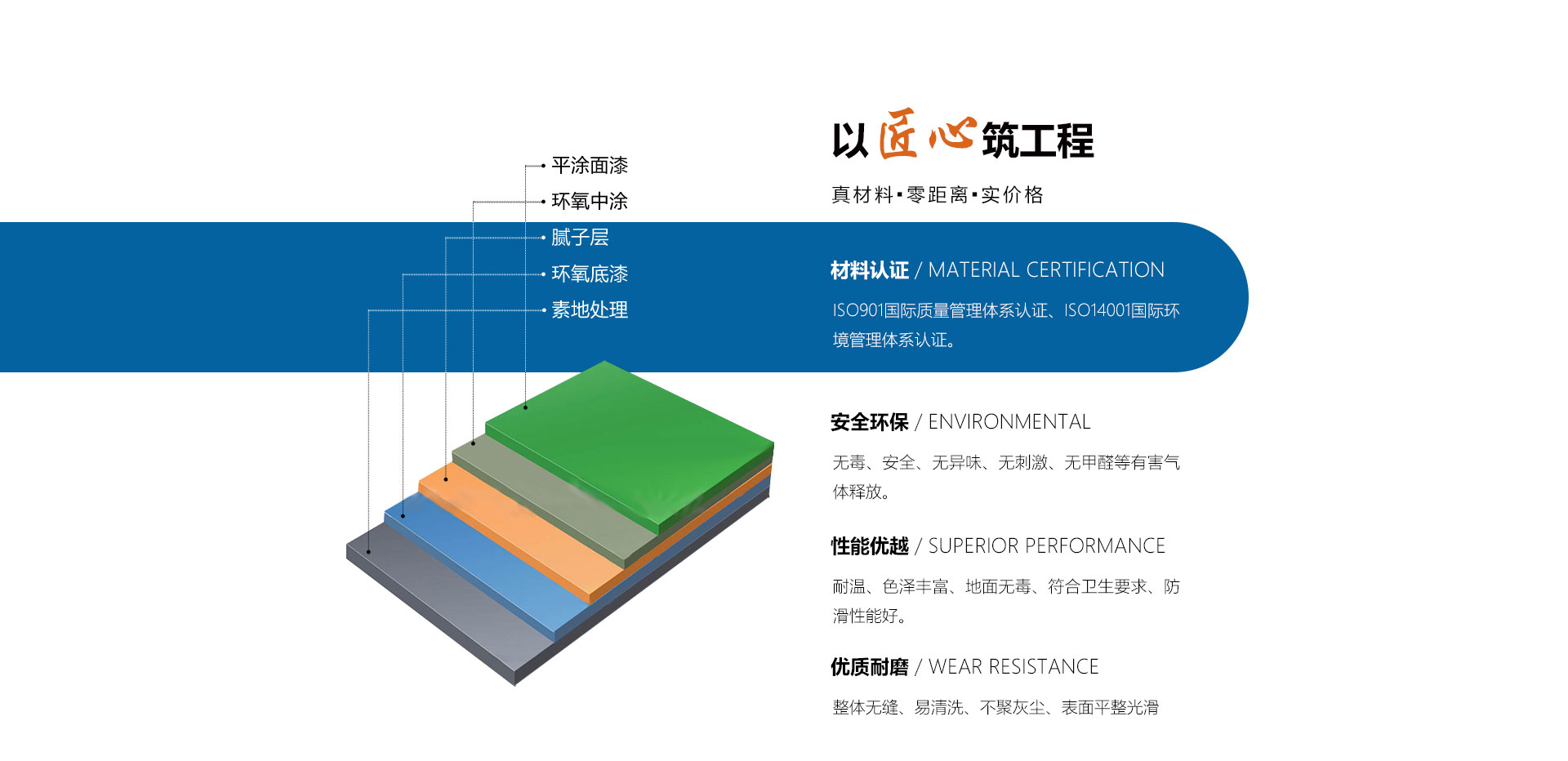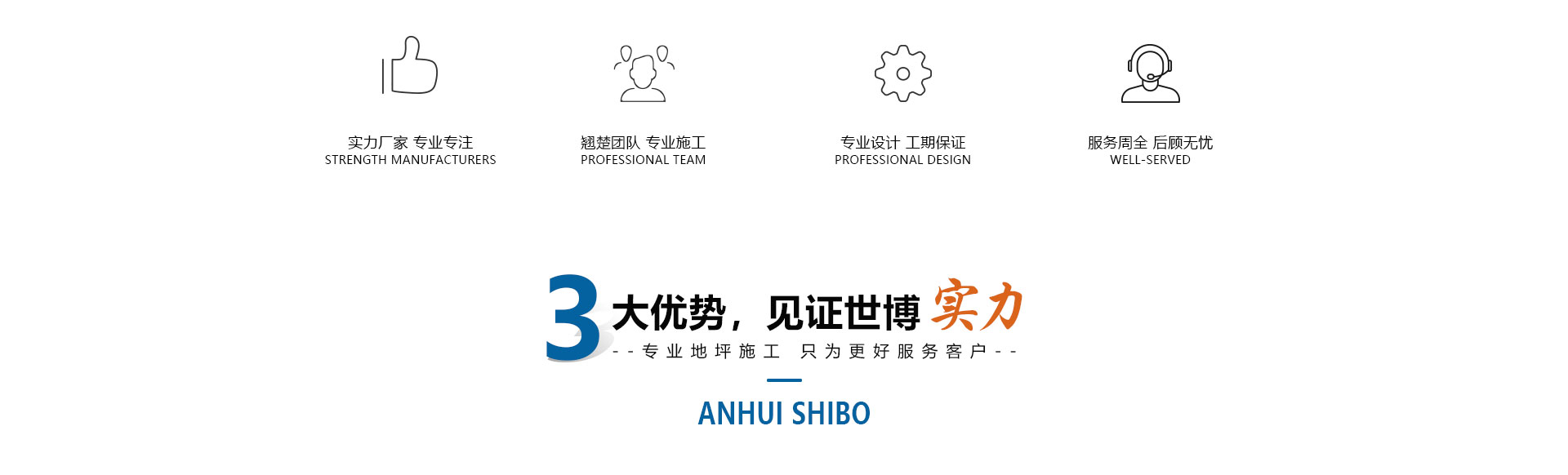安徽世博裝飾工程有限公司成立于2009年,是一家以外墻涂料、工業(yè)地坪設(shè)計(jì)、施工和銷(xiāo)售為主要的專業(yè)性工程公司、是工業(yè)地坪施工的專業(yè)企業(yè)。公司設(shè)立了售后服務(wù)中心,用戶遍布全國(guó)大中小城市,一大批具有標(biāo)志性的長(zhǎng)期合作伙伴。“世博公司”環(huán)氧地坪工程,受到了越來(lái)越多的不同行業(yè)用戶的好評(píng)及青睞。公司擁有一批經(jīng)驗(yàn)豐富的管理人員和專業(yè)的施工人員,以保障產(chǎn)品的成功應(yīng)用,用較小的代價(jià)獲得理想的效果,尤其在地坪涂裝方面優(yōu)勢(shì)突出。而且以好的品質(zhì)管理模式,向客戶提供“獨(dú)具魅力”、“性能優(yōu)異”、“質(zhì)量穩(wěn)定”的產(chǎn)品。公司主要產(chǎn)品包括:平涂型環(huán)氧地坪、環(huán)氧砂漿地坪、環(huán)氧樹(shù)脂自流平地坪、滾涂型防靜電地坪、自流平防靜電地坪、復(fù)古地坪、水性環(huán)氧樹(shù)脂地坪、彩色透水混凝土地坪、壓花壓模藝術(shù)地坪、金剛砂耐磨硬化地坪、混凝土密封固化劑地坪、乙烯基酯重防腐地坪、GEP 標(biāo)準(zhǔn)型地坪、彈性PU運(yùn)動(dòng)場(chǎng)地坪、塑膠跑道地坪,PVC橡膠地板、停車(chē)場(chǎng)地坪、無(wú)震...